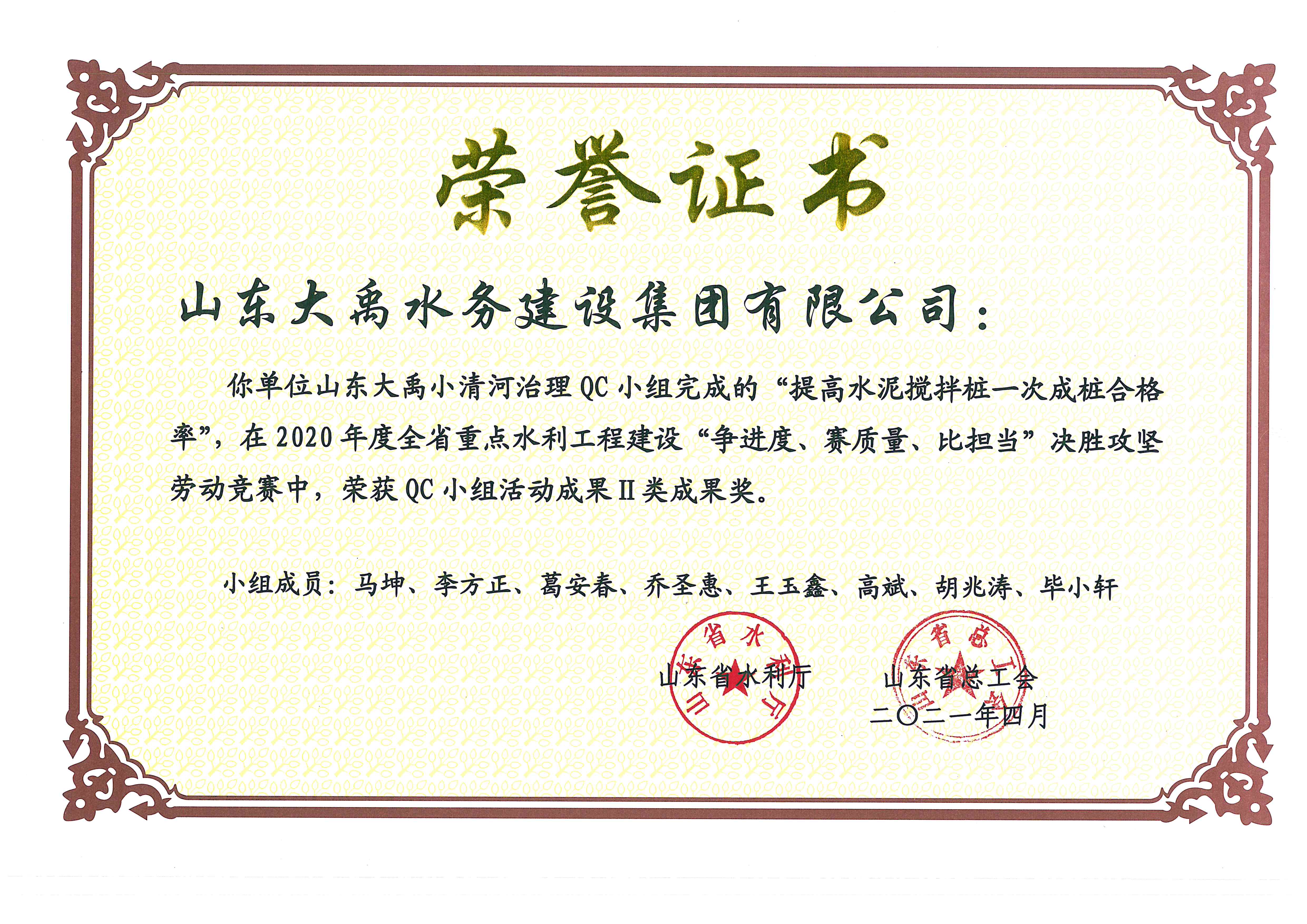 2021年QC小組二等獎(jiǎng)證書(shū)
