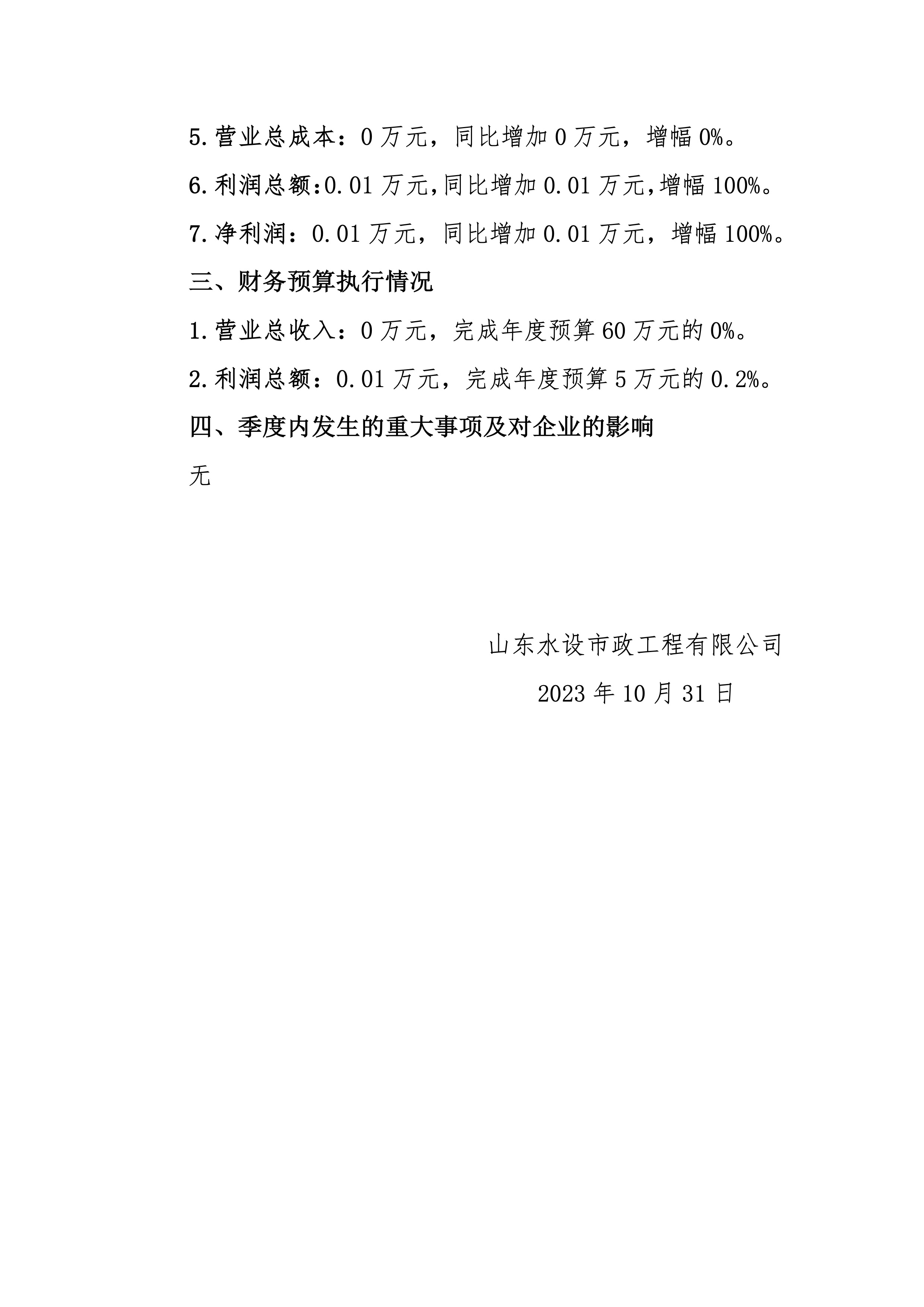 山東水設(shè)市政工程有限公司2023年第三季度財(cái)務(wù)信息公告