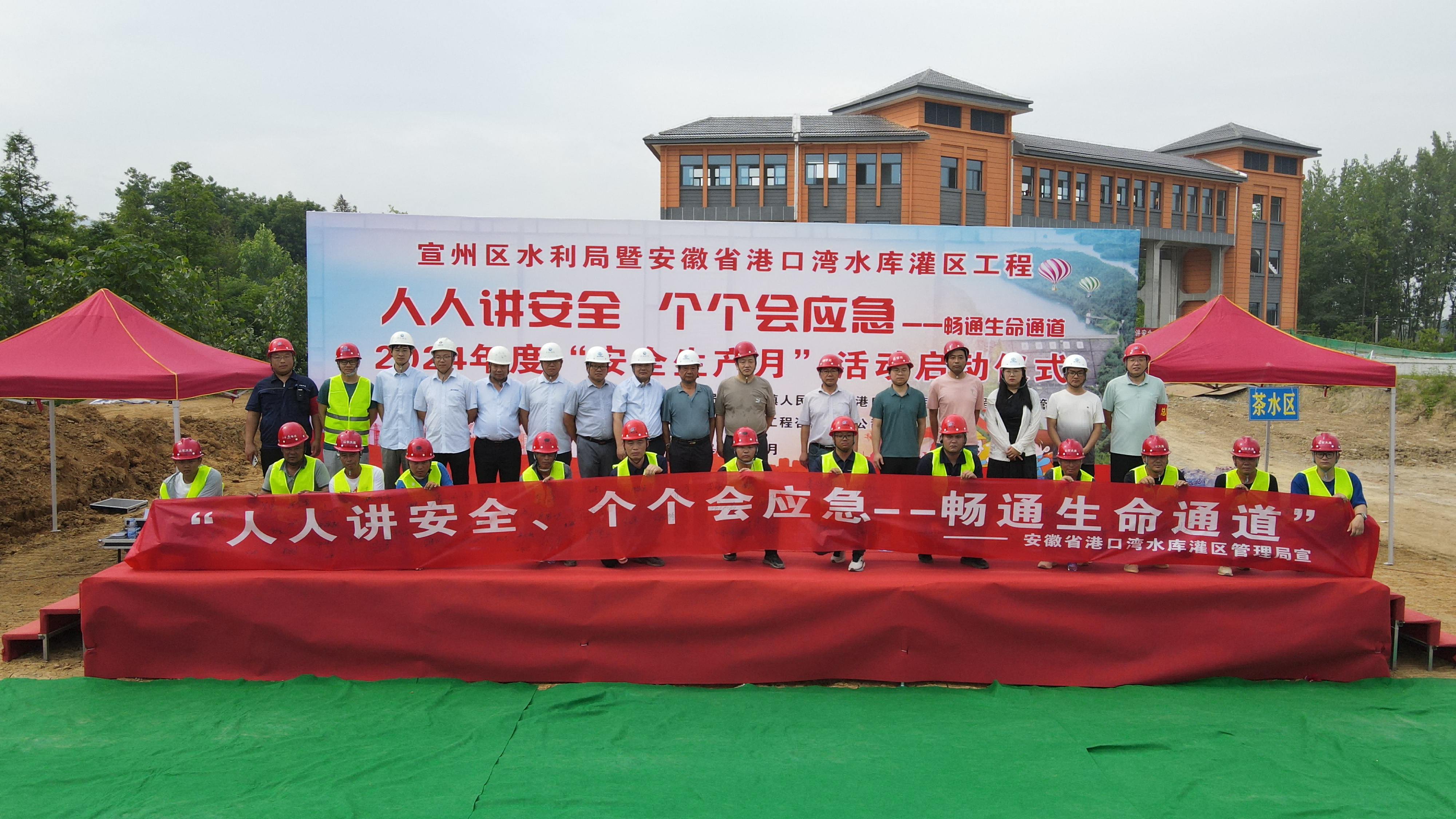 6月14日,安徽省港口灣水庫灌區(qū)工程2024年度安全生產(chǎn)月活動啟動儀式暨綜合應(yīng)急演練在集團(tuán)公司承建的施工14標(biāo)佟東佟李分水閘舉行。宣州區(qū)水利局局長張?jiān)啤⒅兴春影不蘸阈殴こ套稍冇邢薰究偙O(jiān)汪亞超、集團(tuán)公司副總經(jīng)理兼安全總監(jiān)馬永收出席活動并致辭,宣州區(qū)人民政府副區(qū)長黃彬宣布安全生產(chǎn)月活動正式啟動。活動伊始,全體人員在“人人講安全,個個會應(yīng)急——暢通生命通道”條幅上簽名并合影。活動認(rèn)真貫徹國家安全生產(chǎn)方針,深入踐行“人人講安全,個個會應(yīng)急——暢通生命通道”主題要求,真正把安全責(zé)任扛在肩上、抓在手中、落在實(shí)處。