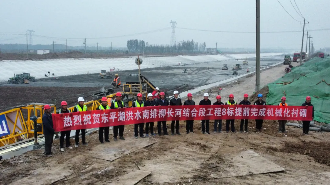 冬日暖陽升,東平湖波光粼粼、如詩如畫,柳長河結合段施工現場,熱火朝天、機器轟鳴,有一大批工程建設者正奮戰在一線。自9月16日開工,襯砌機9月24日進場以來,經過數日從黎明到黃昏、又從黃昏到黎明的不懈奮斗,11月10日,京杭運河濟寧至東平段航道“三改二”(柳長河段)工程與東平湖老湖區洪水相機南排工程航運與洪水南排結合段施工8標(簡稱南水北調柳長河結合段工程施工8標)機械化襯砌護坡施工任務率先圓滿完成!