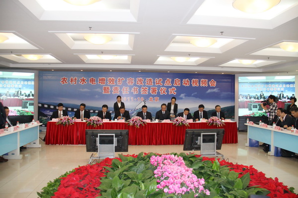 本站訊 10月19日,水利部和財政部在京共同召開農村水電增效擴容改造試點啟動視頻會暨責任書簽署儀式,啟動農村水電增效擴容改造試點工作,水利部部長陳雷出席并作重要講話。他強調,實施農村水電增效擴容改造使命光榮,任務艱巨,責任重大,一定要切實把這一利國惠民的好事辦實、實事辦好,高效優質地完成試點目標任務,向黨和人民交上一份滿意的答卷。財政部副部長張少春出席會議并講話。