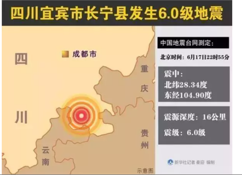 6月17日22時55分,四川省宜賓市長寧縣發生6.0級地震,震源深度16千米。水利部立即部署,要求四川省和重慶市水利廳(局)組織水利部門加強水利工程等隱患排查,及時報送震損情況,抓緊開展防災避險等工作,確保人民群眾生命財產安全。