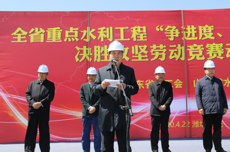 4月22日上午,山東省在濰坊壽光市彌河分流控制閘工程施工現場舉行全省重點水利工程建設“爭進度、賽質量、比擔當”決勝攻堅勞動競賽動員大會。山東省委常委、統戰部部長,省總工會主席張江汀出席大會并宣布競賽啟動,省總工會黨組書記、常務副主席劉貴堂進行競賽動員,省水利廳黨組書記、廳長劉中會主持會議。