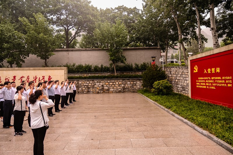 參觀后,大家來到初心廣場,面對鮮紅的黨旗,重溫入黨誓言,重新感受入黨初心。