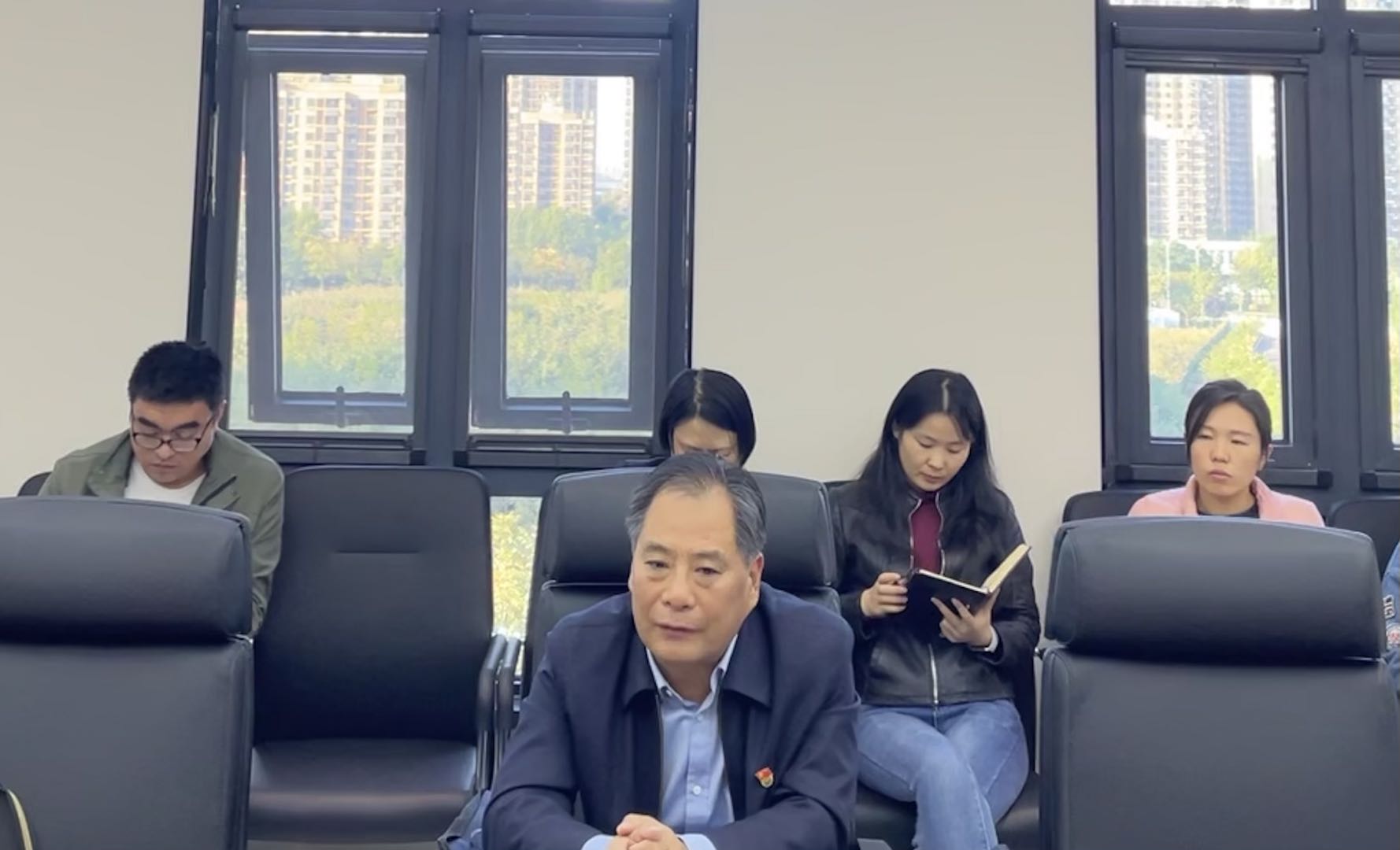 2021年10月11日,院黨委委員、紀委書記馬慶軍帶領(lǐng)紀檢工作人員到山東大禹水務(wù)建設(shè)集團有限公司調(diào)研指導(dǎo)工作,公司中層副職以上干部及全體黨員參與座談。