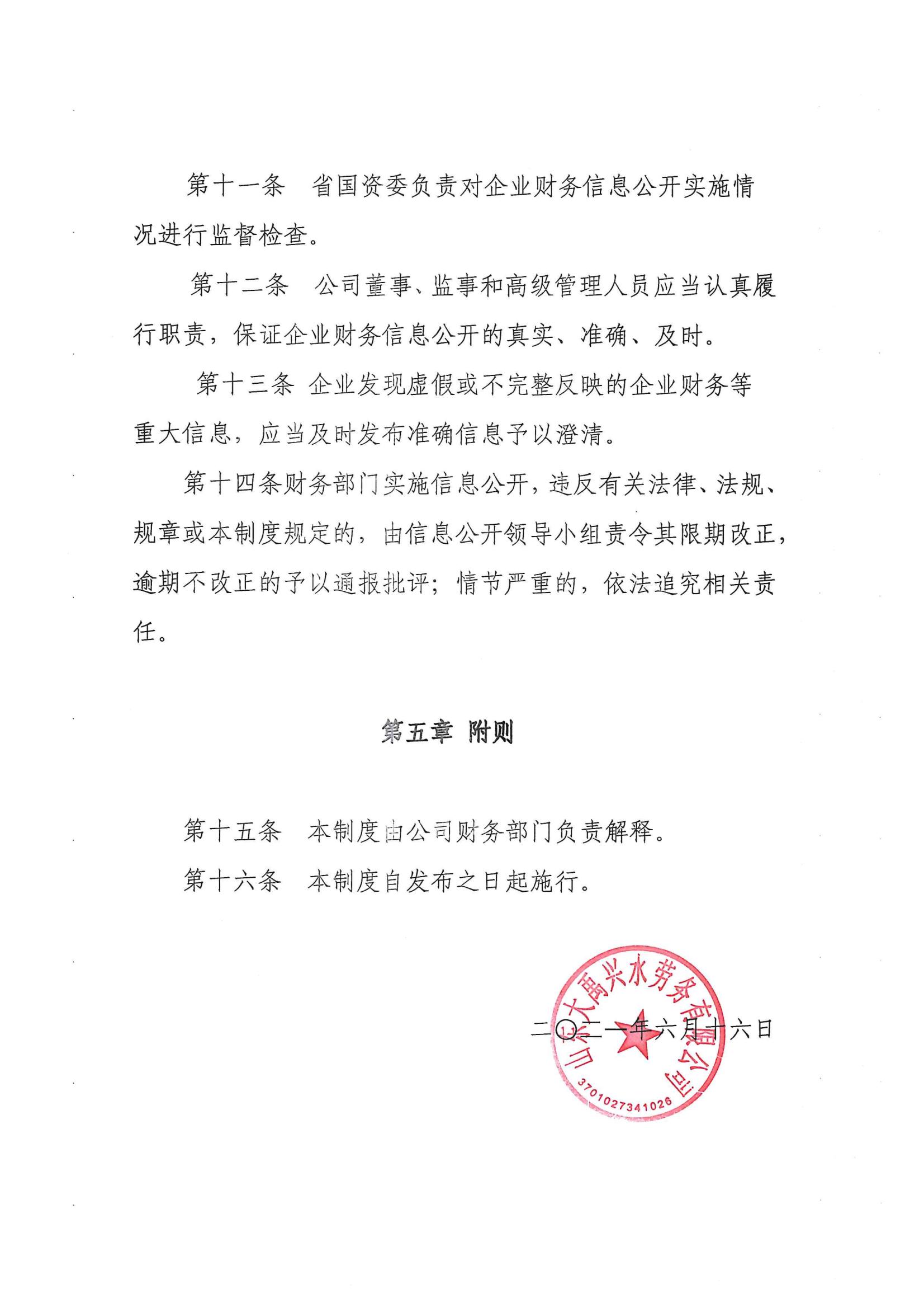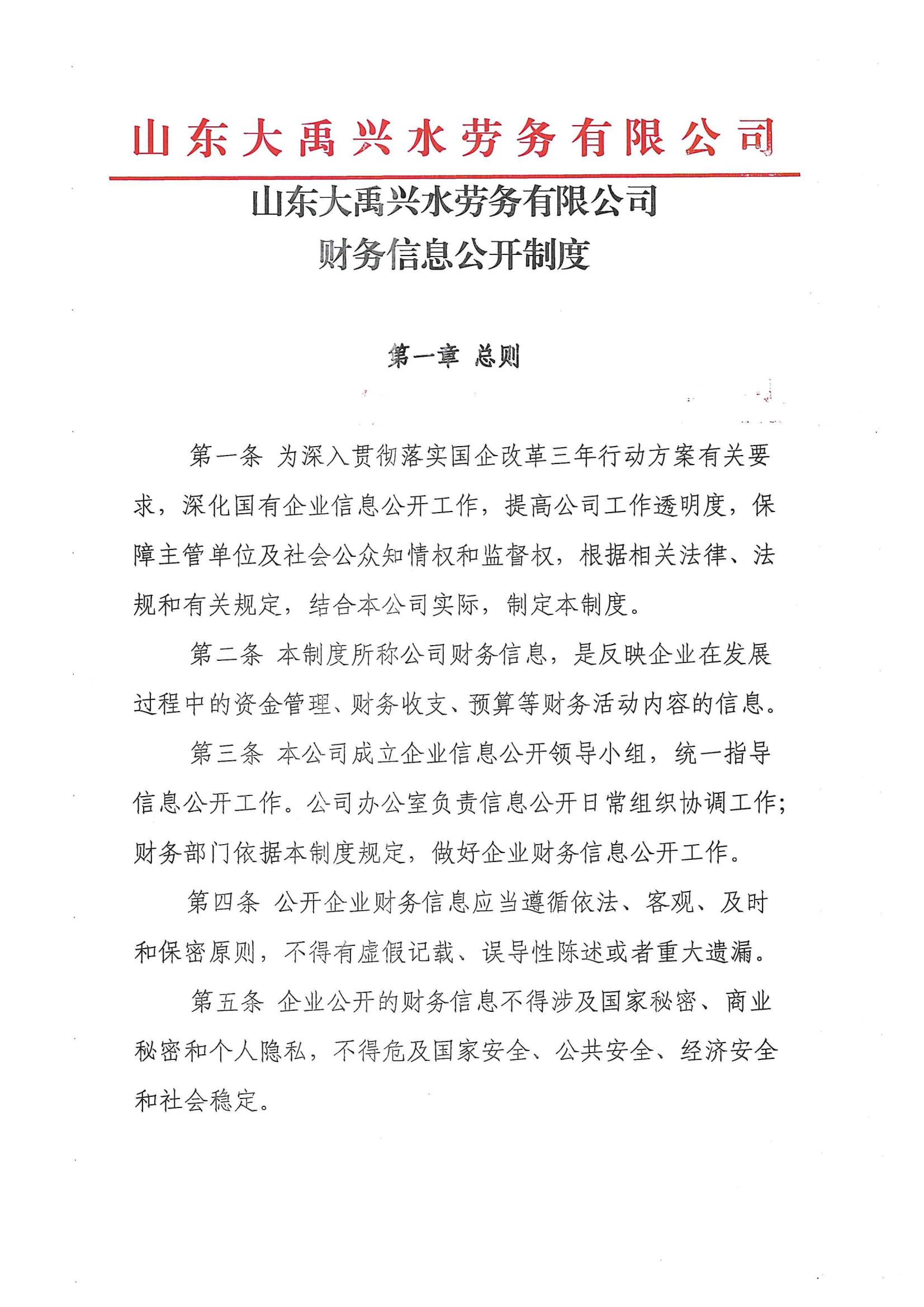 山東大禹興水勞務有限公司財務信息公開制度