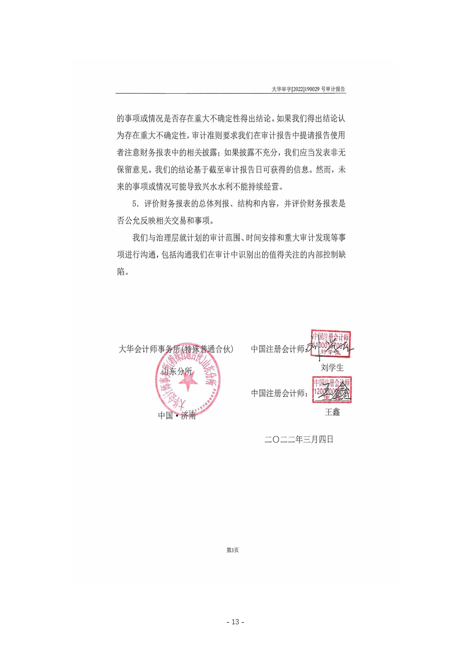 山東興水水利科技產(chǎn)業(yè)有限公司2021年度財(cái)務(wù)重大信息公告